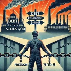 A System Designed to Keep You Trapped Modern society has perfected a system to maintain economic control over the majority while ensuring the stability of the elite. This system revolves around three critical pillars: the 9-to-5 work culture, a standardized education system, and pervasive debt. The 9-to-5 Work Trap Henry Ford’s introduction of the 40-hour
