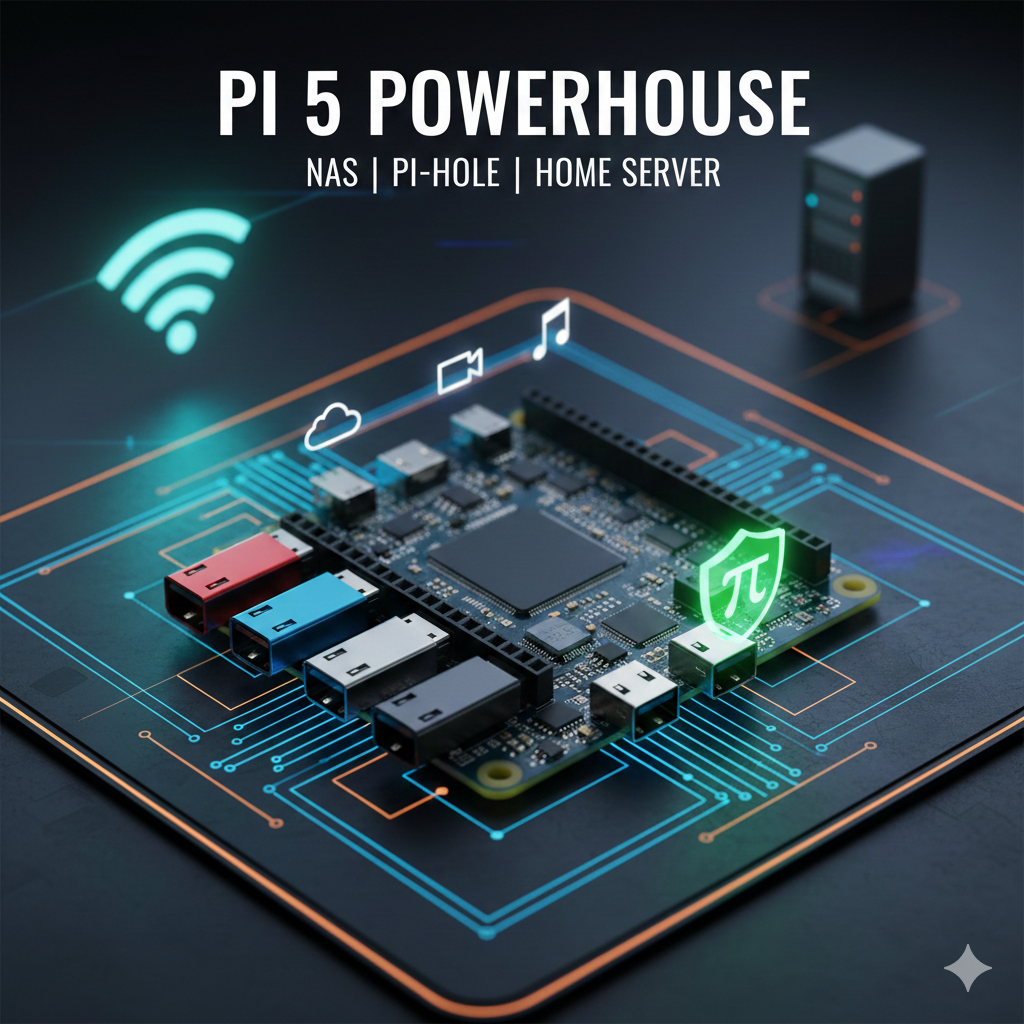 Building a High-Performance Raspberry Pi 5 Home Server & NAS This guide covers the full setup of a Raspberry Pi 5 (8GB) acting as a Network Attached Storage (NAS) and a network-wide ad-blocker (Pi-hole). 1. Hardware Overview & Initialization The Raspberry Pi 5 is a significant upgrade, featuring the Cortex-A76 architecture. Initial Identification To check